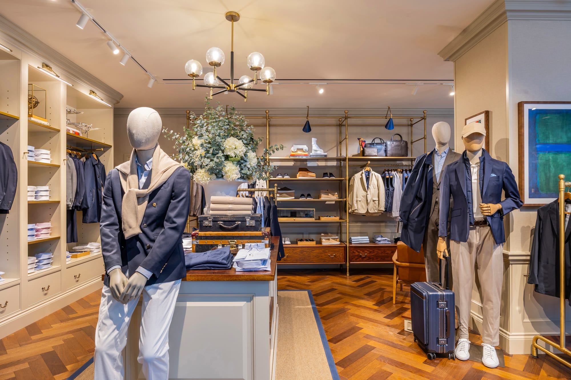 Das Interieur des neuen Hackett Store Frankfurt folgt dem bekannten Hackett-Look: antike Möbel, Vintage-Stücke, moderne Akzente. Es ist die Übersetzung des Londoner Stammhauses ins Frankfurter Bankenviertel. Geführt wird die Hauptkollektion, “Nº14 Savile Row” sowie Personal Tailoring (made to measure). Ergänzend wird auf Anfrage auch vollumfänglicher Bespoke-Service angeboten.