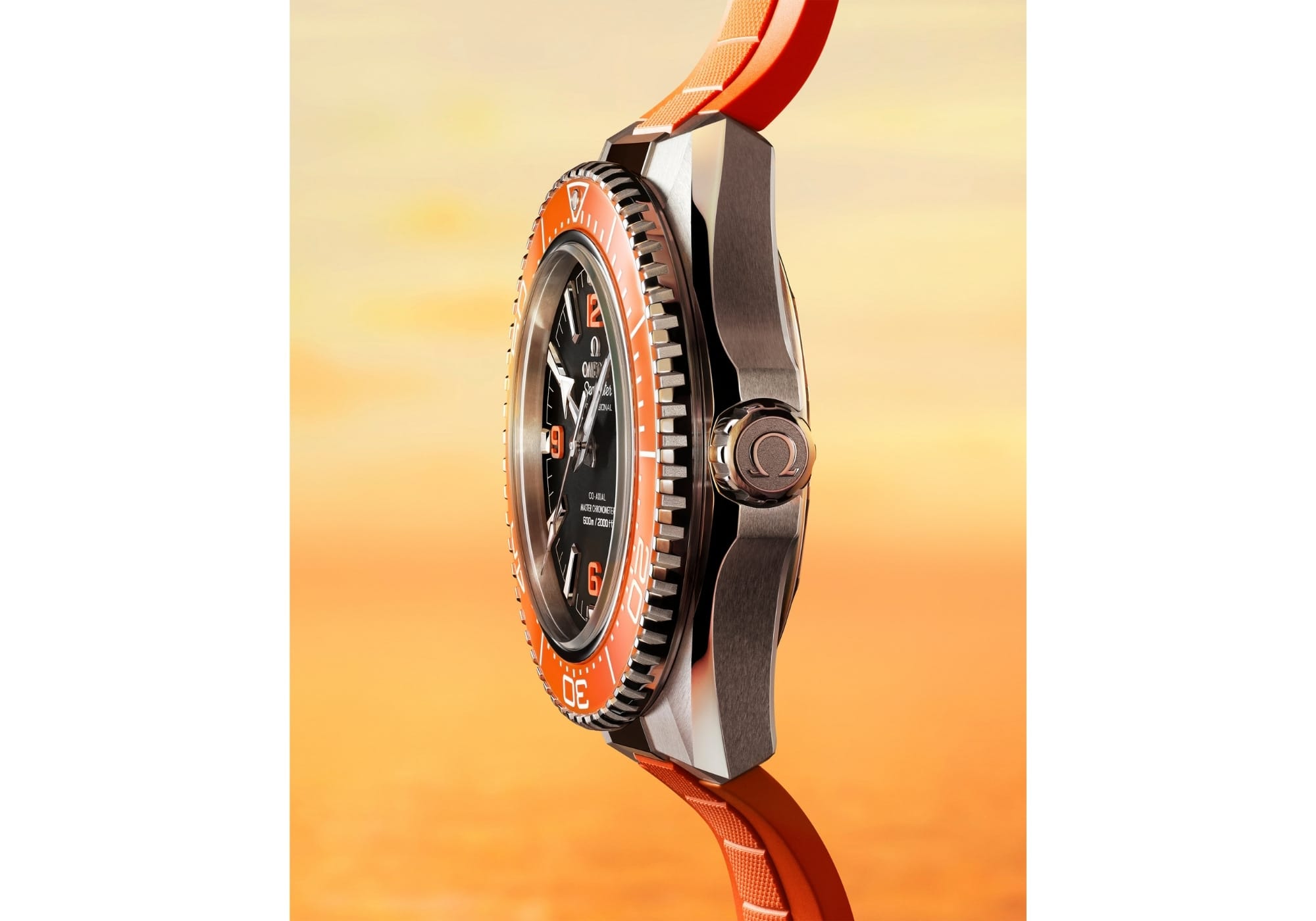 Orange bietet an der Wasseroberfläche den stärksten Kontrast zum Blau des Meeres – deshalb tragen Rettungswesten diese Farbe, deshalb lackierten Taucher der sechziger Jahre ihre Ausrüstung damit. Und deshalb wählte Omega 2005 dieses Orange für die erste Planet Ocean. Was damals riskant war – eine Luxusuhr in der Farbe eines Warnschildes –, ist heute Erkennungszeichen.