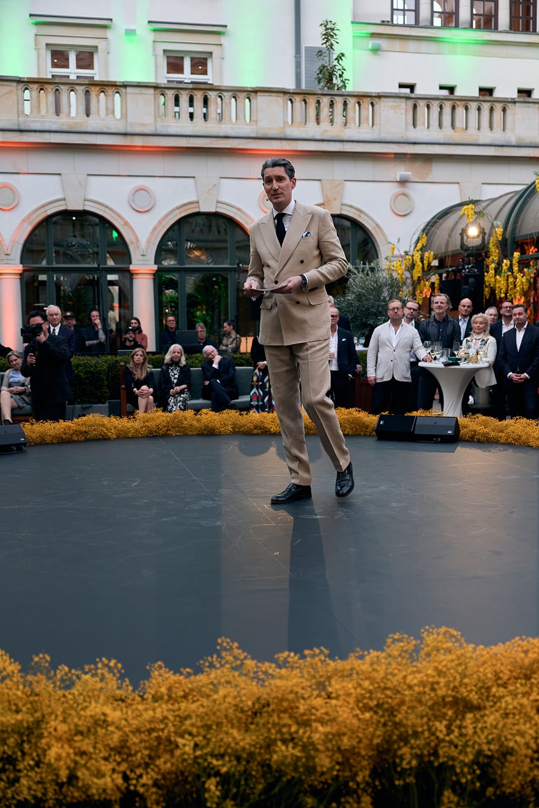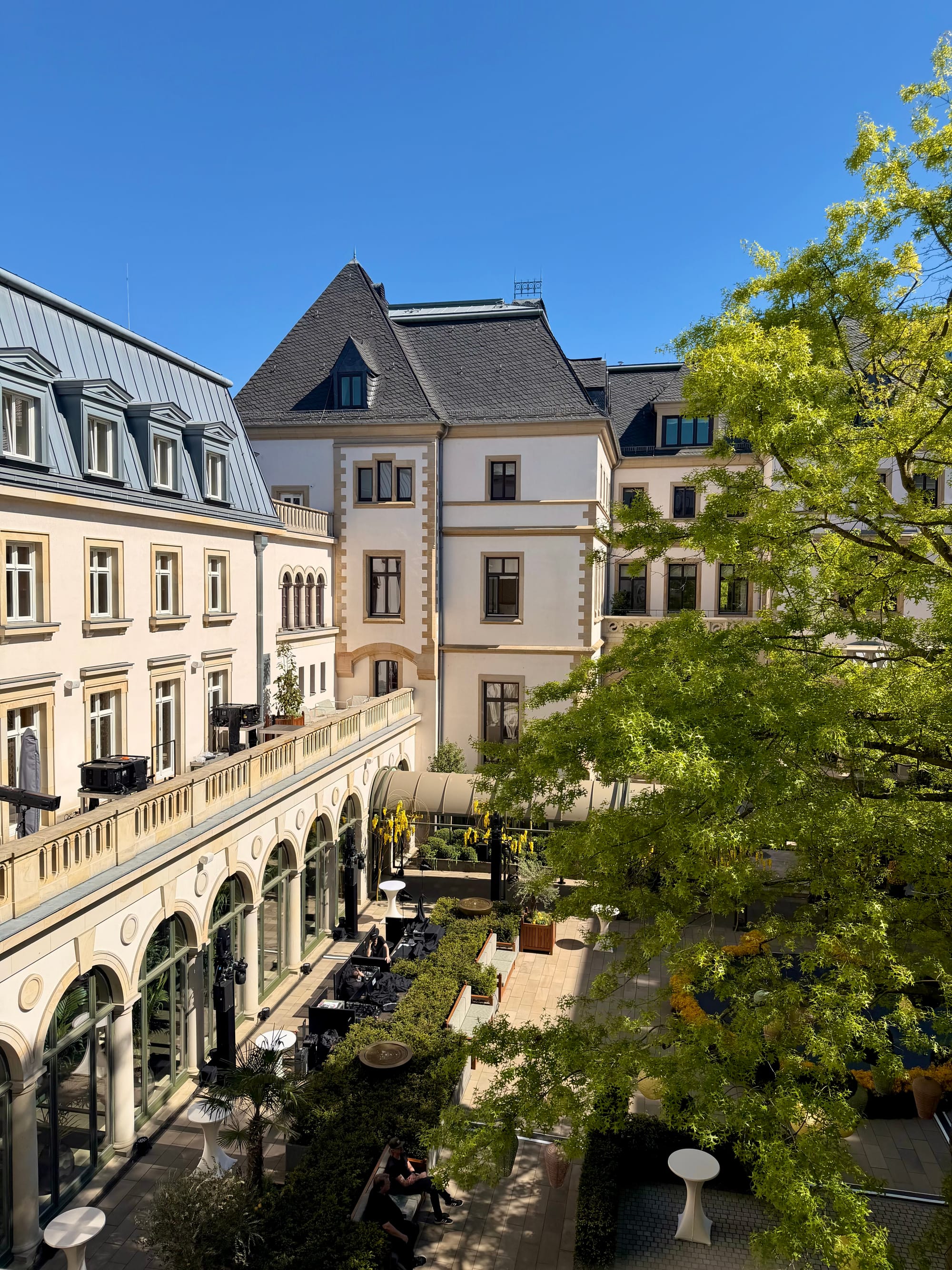Kurz nach vier, der Innenhof noch leer. Boris Messmer, General Manager des Hauses, probt noch einmal seine Rede. Ich kenne ihn seit der Schulzeit und sehe beides: Stolz, die Freude auf den Abend und den Wunsch, dass alles möglichst bald vorbei sein möge. Gefühlt sieht ihm niemand dabei zu, außer mir und den Elevator Boys auf dem Balkon gegenüber.