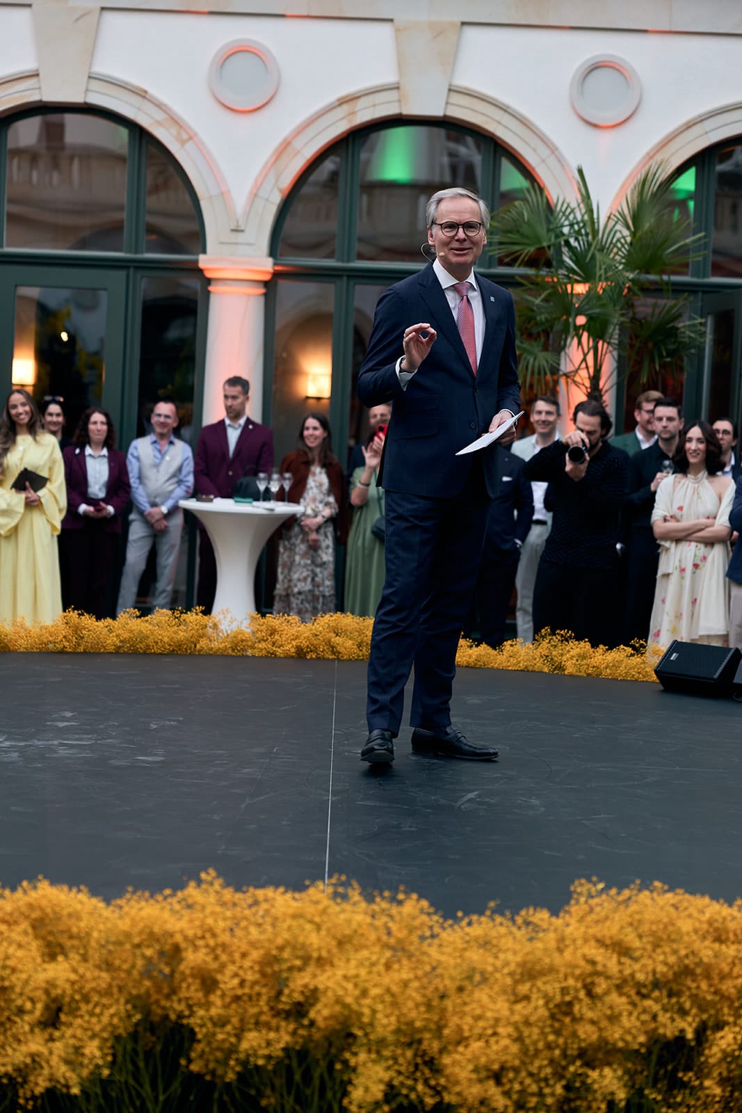 Dann beginnt der Abend. Iris Berben kommt, Christine Lagarde, Till Brönner, Marcel Reif. Sebastian Koch führt durch die Veranstaltung. Marrenbach und Messmer halten ihre Reden, das Pflichtprogramm jeder Eröffnung: Dank an den Eigentümer Thomas Althoff, Bekenntnis zur Stadt. Die King Kamehameha Club Band spielt im Innenhof, Sternekoch Niclas Nußbaumer und Cornelia Fischer schicken Gänge auf die Stationen, keine Standard-Häppchen, eher ein Vorgeschmack auf das Haus, das sich der Welt gerade öffnet.