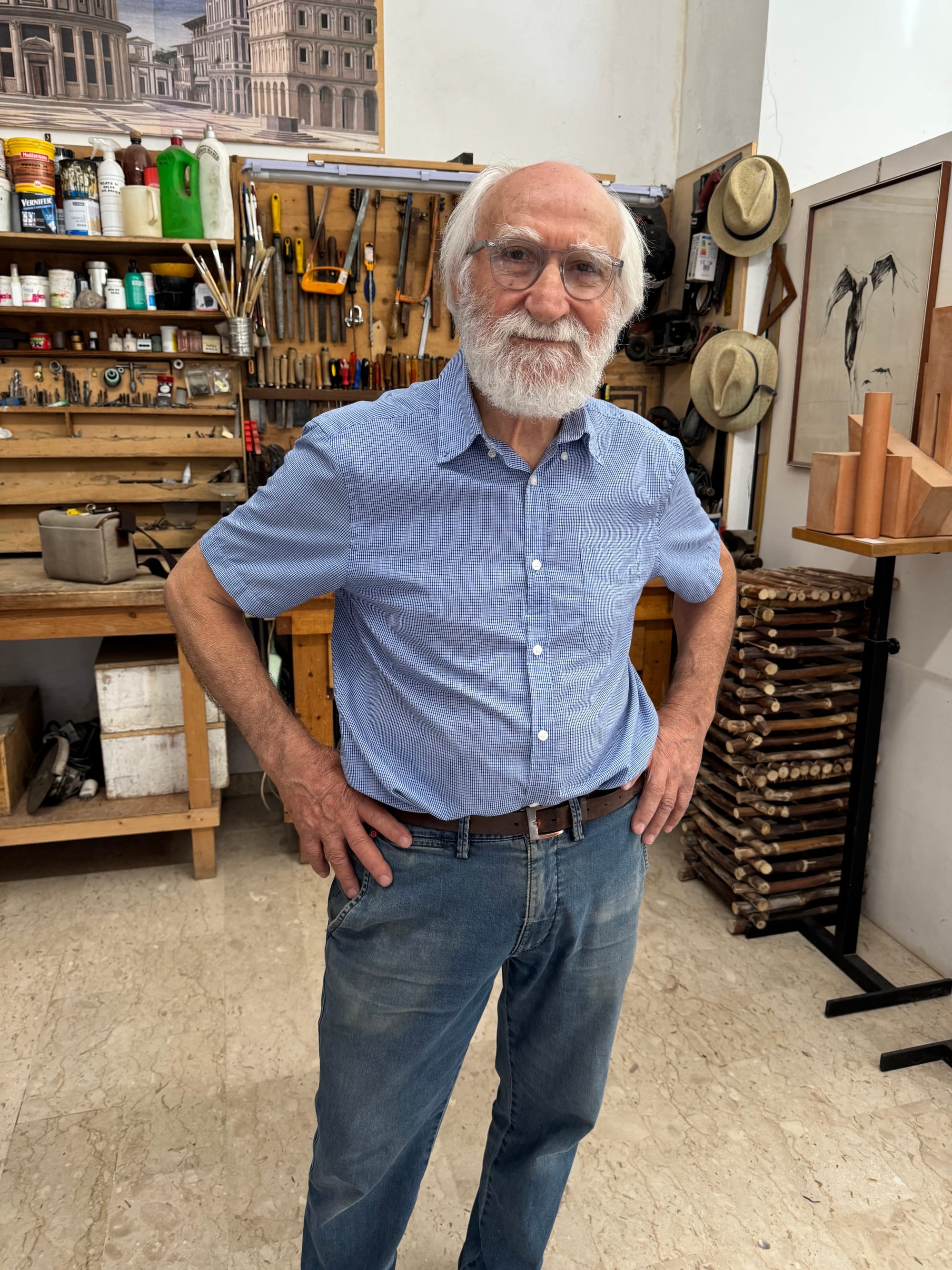 In einer Werkstatt an der Hauptstraße von Caltabellotta sitzt ein älterer Herr und erzählt. Er spricht Italienisch, der Übersetzer kommt mit Mühe nach.